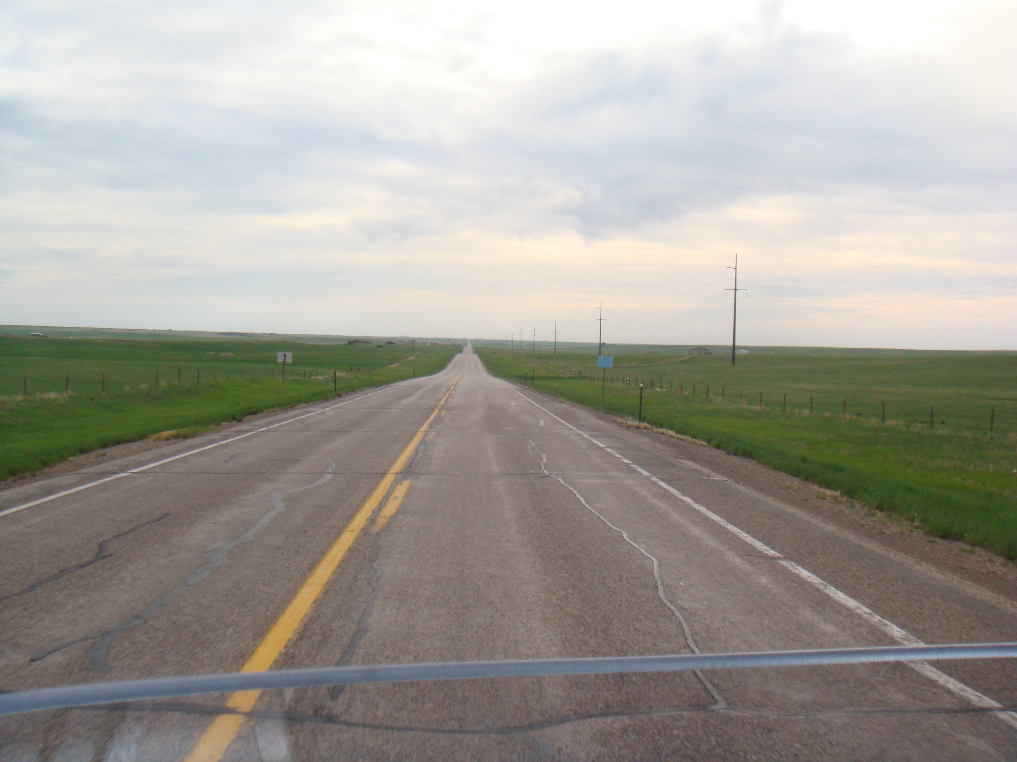 We made our way north to a town called Torrington where we stopped for gas at a Maverick station. We then encountered potential rain. We stopped along the road to add the layer of rain protection gear and then continued on. Never encountered rain until after Lusk which is a very small town in Wyoming. And, it wasn’t really rain we encountered. It was more like driving through a thick cloud. Kind of foggy here and there with some droplets. We were at about 5,000 ft above sea level and the clouds just seemed to rest on the ground. The worse part of that was the other cars that didn’t have their headlights on. This is a real pain. We were following about 4 cars including a truck. The weather finally broke and we were able to get around them and cruise on at our normal cruising speed of about 82mph.