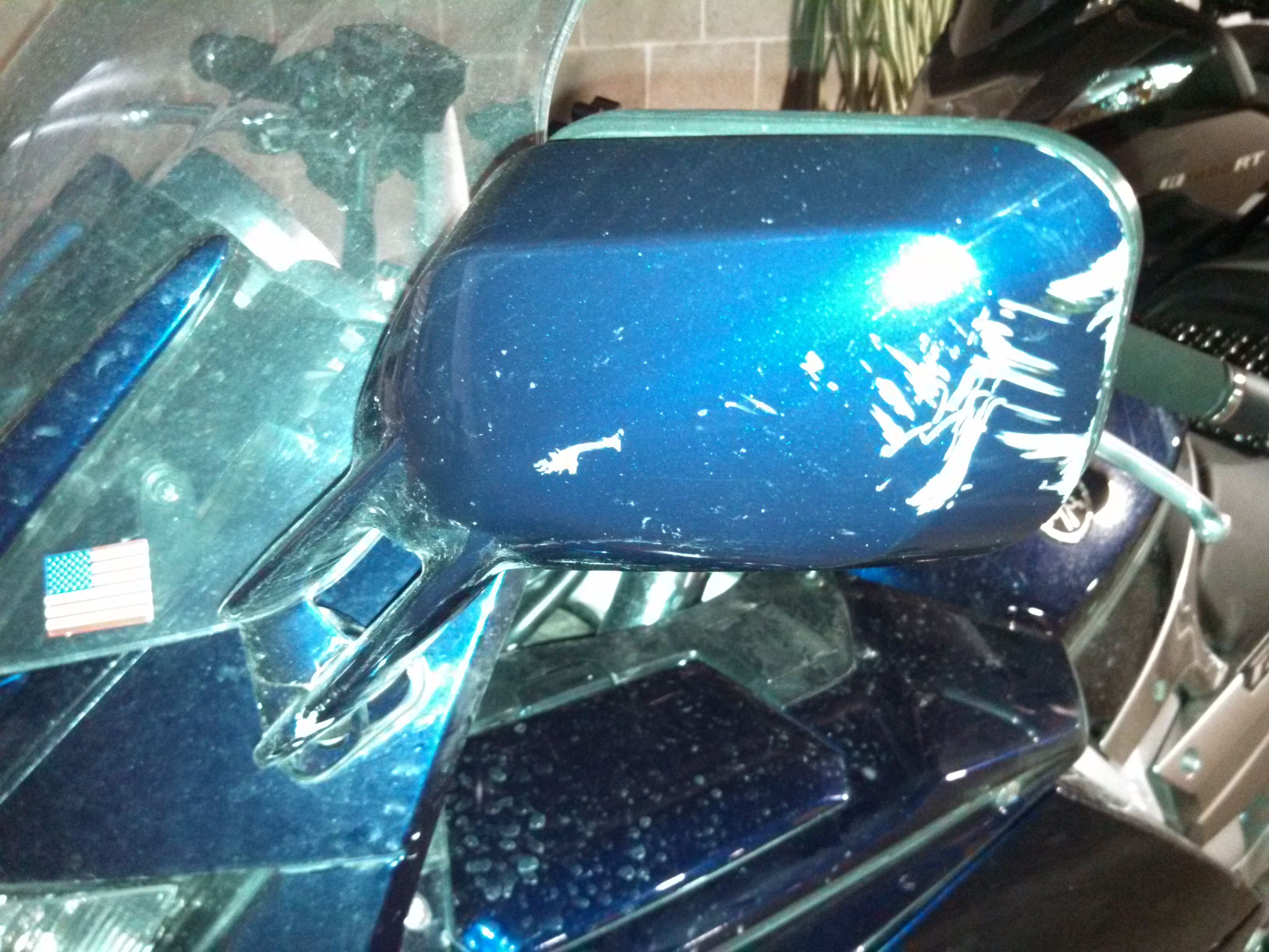 We get the bike upright and look for damage. The mirror on the left is damaged and, well, that’s about it. On his FJR, there’s a bit of rubber on the side case that helped prevent damage to the paint on the rear and the sliders he had installed up front helped prevent any further body or engine damage. All in all, he walked away fairly lucky from what turns out is a fairly common occurrence with the FJR. The kickstand doesn’t go all the way down and the bike just rolls right on over as you start to lean on it. I didn’t have the heart to stop and take photo’s of him and the bike laying in the road. Probably should have. 🙂